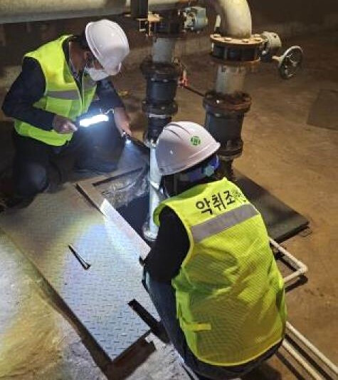 | ▲ 정화조에 설치된 악취 저감시설을 점검하고 있는 모습. (사진=영등포구청 제공) |