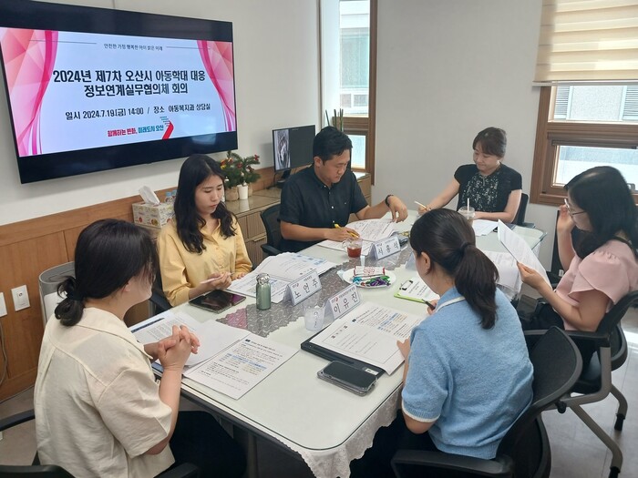 경기 오산시는 최근 오산경찰서 등 아동 보호 유관기관이 참석한 가운데 제7차 아동학대 대응 정보연계 실무 협의체 회의를 개최해 위기임신 상담 및 보호 출산 관련 논의 등을 논의했다. 사진은 이날 회의를 진행하고 있는 모습. (사진=오산시청 제공)