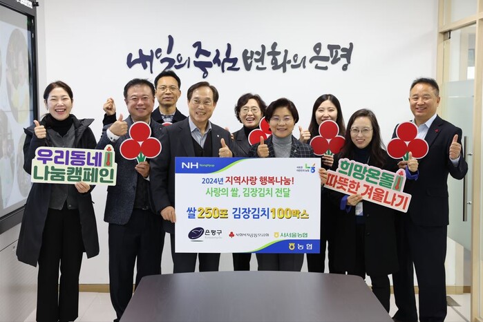 [시민일보 = 이대우 기자] 은평구(구청장 김미경)는 지난달 28일 서서울농협과 2025 희망온돌 따뜻한 겨울나기 사랑의 이웃돕기 성품 전달식을 가졌다고 밝혔다.