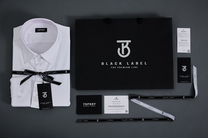 첫 제품인 이 ‘탑보이 블랙라벨’ 레귤러핏 클래식 드레스 셔츠는 수트나 블레이저와 착용하기 적합하도록 미니멀한 디자인이 특징으로, 잔잔한 드윌 조직이 TR스판 소재가 적용되어 구김이 적고 부드러운 점이 특징이다.