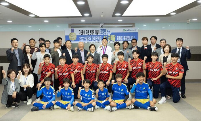 김미경 구청장은 “이번 아시안게임 한일전 결승전에서 조영욱 선수의 역전골이 들어가는 순간 저도 모르게 환호성을 질렀다. 다시 한번 대회 우승을 축하드린다”며 “이번 아시안게임 우승을 계기로 더 큰 꿈을 갖고 활약해 앞으로 세계적인 축구 대표 선수가 되길 진심으로 응원한다”고 말했다.