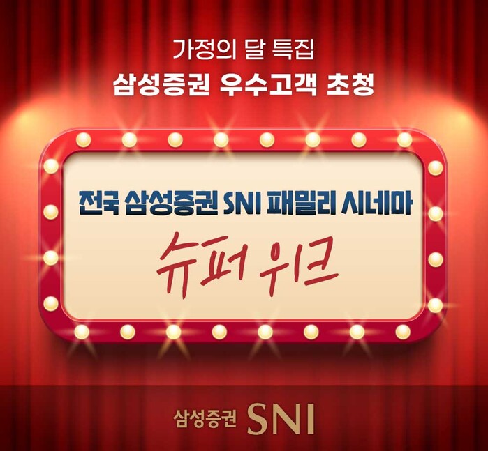 [시민일보 = 여영준 기자] 삼성증권은 우수고객 대상 프리미엄 문화행사인 '전국 SNI 패밀리 시네마 슈퍼위크'를 개최한다고 12일 밝혔다.