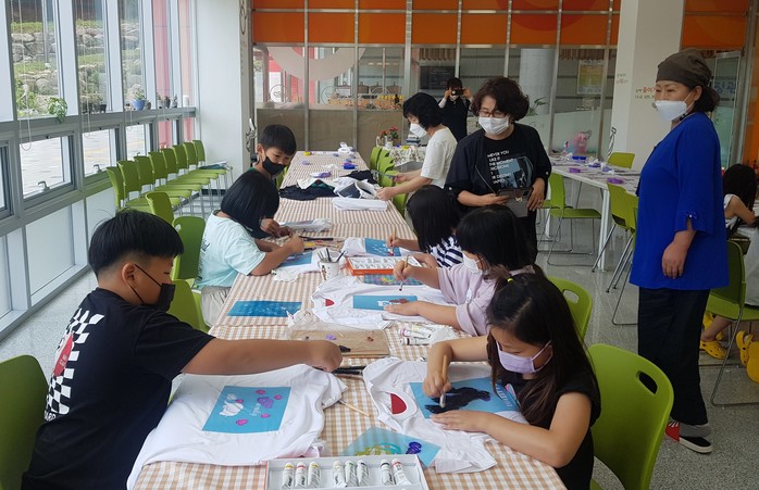 또 학생들은 단체티로 활용하기 위해 흰색 티셔츠를 공동으로 선택하여 스텐실 도안과 물감을 이용하여 취향대로 다양하게 꾸미며 신나는 시간을 보냈다.