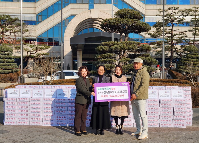 전달식 현장에 참석한 이현경 문화복지국장은 “이민식·이숙희·이원호·이태호 가족의 꾸준한 사랑 나눔 실천에 깊은 감사를 드린다”며 “갑진년 설 명절을 앞두고 전해주신 떡국떡은 가족이 그리운 지역내 저소득층 및 다문화·외국인 주민에게 큰 힘이 될 것”이라고 말했다.