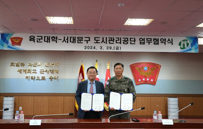 [시민일보 = 이대우 기자] 서울 서대문구도시관리공단과 육군대학이 최근 육군대학 김유신장군실에서 호국·역사의식 함양 및 군 인재 양성을 위한 업무협약(MOU)을 체결했다.