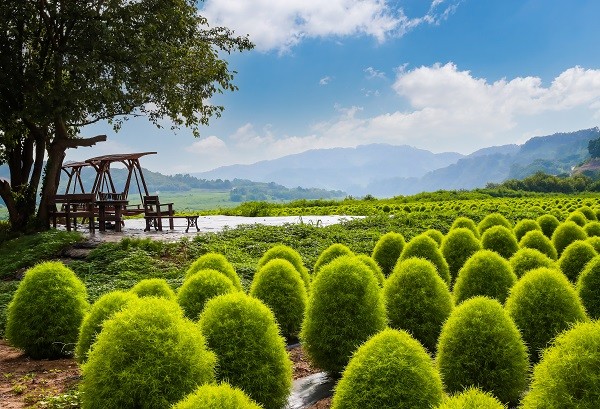 ‘겸허, 청초한 미인’의 꽃말을 가진 댑싸리는 8월 말부터 불긋불긋해지고 9월 초 분홍색과 빨간색, 주황색으로 물들어 이색적인 분위기를 연출한다.