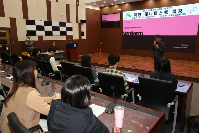 [시민일보 = 이대우 기자] 은평구(구청장 김미경)는 지난 14일 구청 대회의실에서 민선 8기 공약의 성공적 이행을 위해 ‘2025년 직원 매니페스토 특강’을 개최했다고 밝혔다.