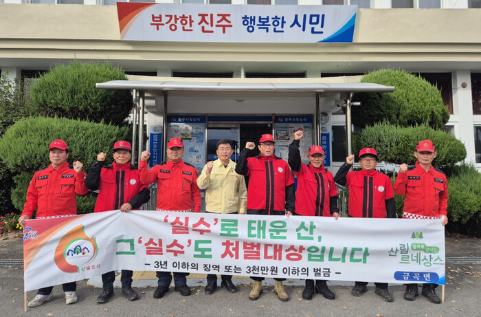 진주시 금곡면사무소는 가을철 산불조심 기간을 맞아 11월 1일 산불진화대원 발대식을 시작으로 2025년 5월 15일까지 산불예방 집중기간을 운영하며 산불예방에 총력을 기울일 계획이다.