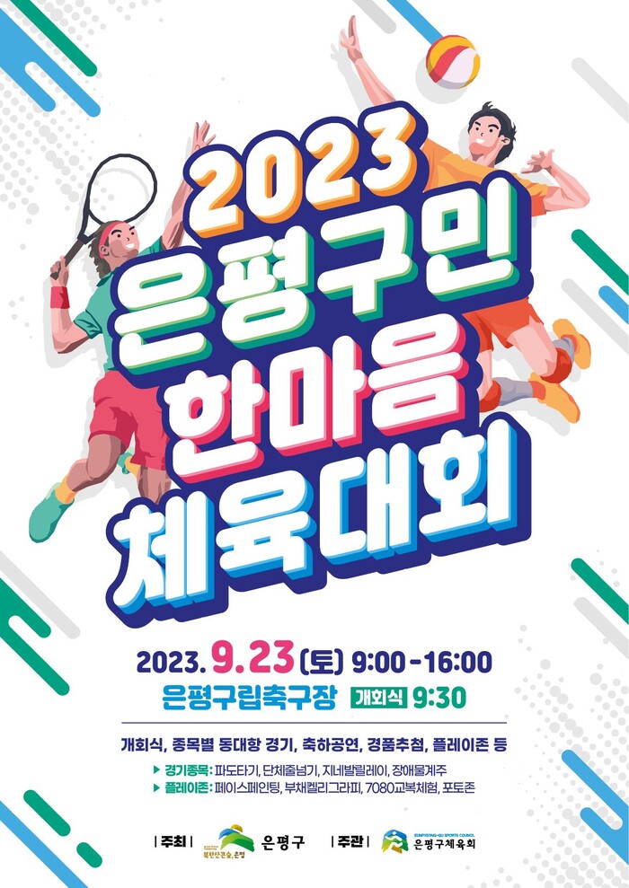 축하공연은 은평구 태권도시범단의 공연과 2023년 은평노래자랑 대상 수상자 등 구민이 참여한 공연으로 체육대회의 열기를 더할 예정이다.