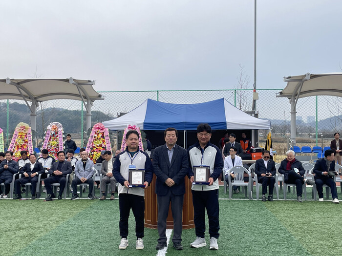 개회식에서는 축구 발전과 생활체육 활성화에 기여한 공을 인정받아 진주시축구협회 권영민 수석부회장과 박수철 부회장에게 진주시장 감사패를, 하상근 이사에게는 진주시체육회장 공로패를 수여했다.