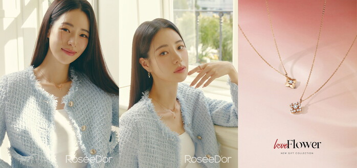 먼저 로제도르 뮤즈 임지연이 화보 속에서 착용한 ‘프로메 세레나데’ 컬렉션은 꽃잎이 날리는 모습을 표현한 듯한 디자인으로 은은하면서도 페미닌한 분위기를 연출한다.