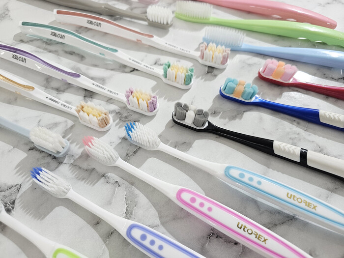 유토렉스는 요새 유행하는 탕후루 및 약과 등 당이 높은 식습관으로 인해 충치 및 치주염을 염려하는 고객들을 위해 칫솔 5종을 선보였다.