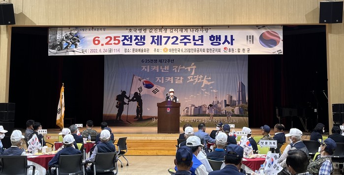합천군은 합천문화예술회관에서 24일 6.25전쟁 제72주년을 맞아 조국수호에 헌신한 참전용사에 대한 예우와 희생정신을 기리고자 ‘6.25전쟁 제69주년 행사’를 개최했다.