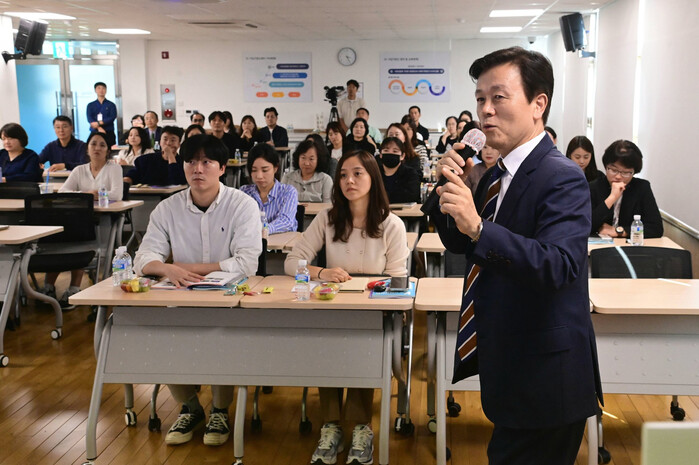 진주시는 16일 진주 K-기업가정신센터에서 관내 초중고등학교 교사 60여 명을 초청해 2025년부터 학교 교육 현장에서 초중고 학생들에게 진주 K-기업가정신이 교육될 수 있도록 교원 사전 연수를 추진했다.