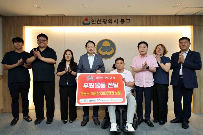 [인천=문찬식 기자] 인천 동구는 (주)휴림컴퍼니가 최근 지역내 취약계층의 건강 보호를 위해 써달라며 마스크 10만장(3000만원 상당)을 기탁했다고 밝혔다.