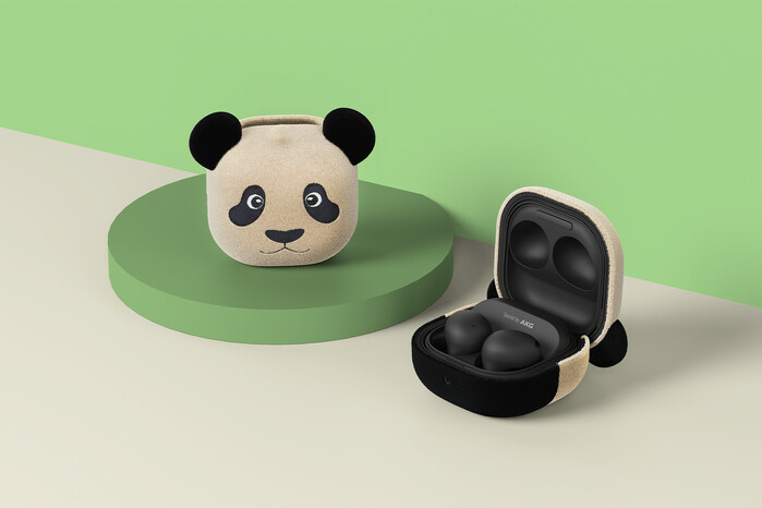 삼성전자에 따르면 '갤럭시 버즈 푸바오 케이스'에는 땅 구르기를 즐기는 푸바오의 털빛 '푸룽지(푸바오+누룽지)' 색상이 적용됐으며, 정수리의 뿔털 디테일까지 살린 것이 특징이다. 한 손에 쏙 들어오는 크기와 부드러운 털 재질은 포근한 그립감을 선사한다.