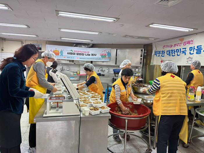 [시민일보 = 이대우 기자] 은평구(구청장 김미경) 대조동은 지난달 31일 대한적십자사 서북봉사관에서 주관하는 사랑의 반찬 나눔 행사에서 조리 봉사활동을 했다고 밝혔다.