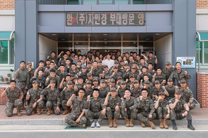 또한 제품 전달과 더불어 자민경 전속 모델인 박태환 前 수영 국가대표 선수가 게릴라 사인회를 진행하며 현장 분위기를 더욱 훈훈하게 형성했다. 박태환 선수의 깜짝 등장에 환호를 보내며 군생활 중 또 하나의 추억을 만들었다.