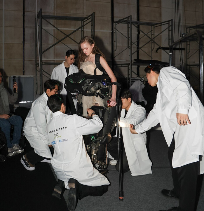 KAIST EXO LAB의 연구진들과 AI 로봇을 착용한 한나신 모델의 피날레 퍼포먼스는 인간과 기술이 공존하는 미래의 패션을 상징하며, 관객들에게 깊은 감동을 주었다.