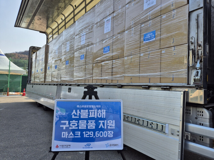 성품 기부도 이어졌다. 에스비글로벌헬스케어는 KF94 마스크 13만장(약 1억1500만원 상당)을 기부했으며, 경북 영덕군 이재민들에 전달됐다.
