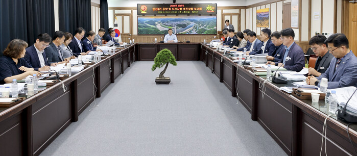 이날 보고회는 김윤철 군수, 관ㆍ국ㆍ직속기관장, 전부서장 등 30여명이 참석한 가운데 민선8기 공약사업과 지시사항에 대한 추진상황을 점검하고 문제점과 개선방안에 대해 논의했다.