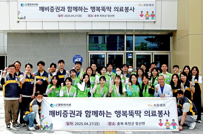 [시민일보 = 박소진 기자] KB증권은 '행복뚝딱 의료봉사'를 충청북도 옥천군에서 지난 27일 진행했다고 밝혔다.