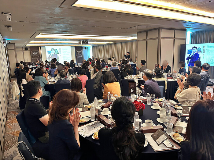 | ▲ 지난 11일 조선팰리스 호텔에서 개최된 ‘우리 W 특화 세미나’에서 참석자들이 이창용 도슨트로부터 미술 감상에 대한 특강을 듣고 있다. (사진=우리은행 제공) |