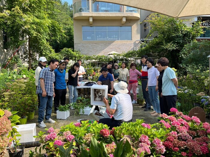 주요 내용으로 ▲자생하는 정원식물의 신규 산림소득원으로서 가치와 가능성 소개 ▲수국 등 고부가 정원식물의 증식기술 및 관리법 습득 ▲정원식물 판매를 위한 종자업등록 등 구체적인 소득화 방법 안내 등으로 운영되고 있다.