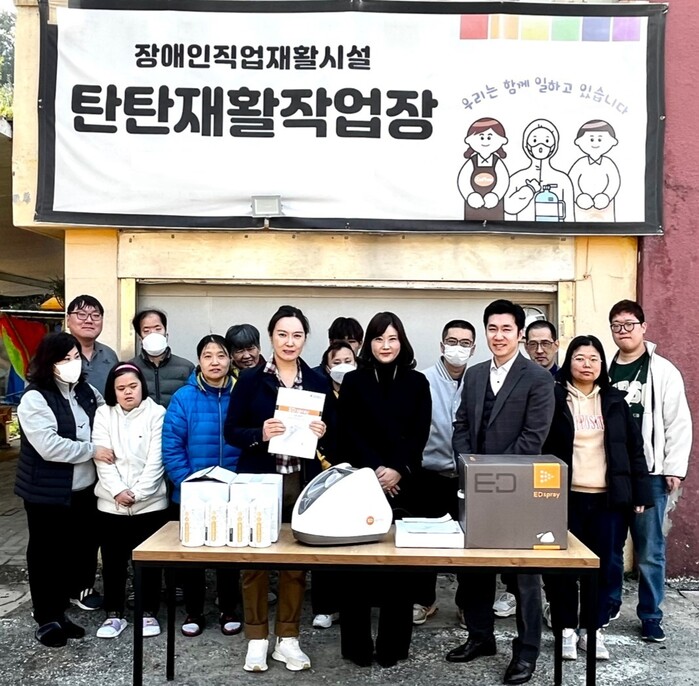 이번 기부 물품은 감염예방 및 방역·소독 그리고 전국적으로 이슈인 빈대 또한 예방하기 위해 주식회사 동아참메드의 제품인 EDspray(멸균방역소독기)와 멸균소독액이다.