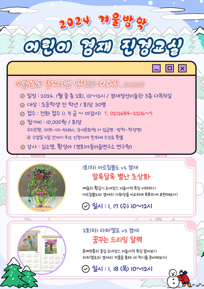 | ▲ 2024 겨울방학 어린이 겸재 진경교실 안내문. (사진=강서구청 제공) |