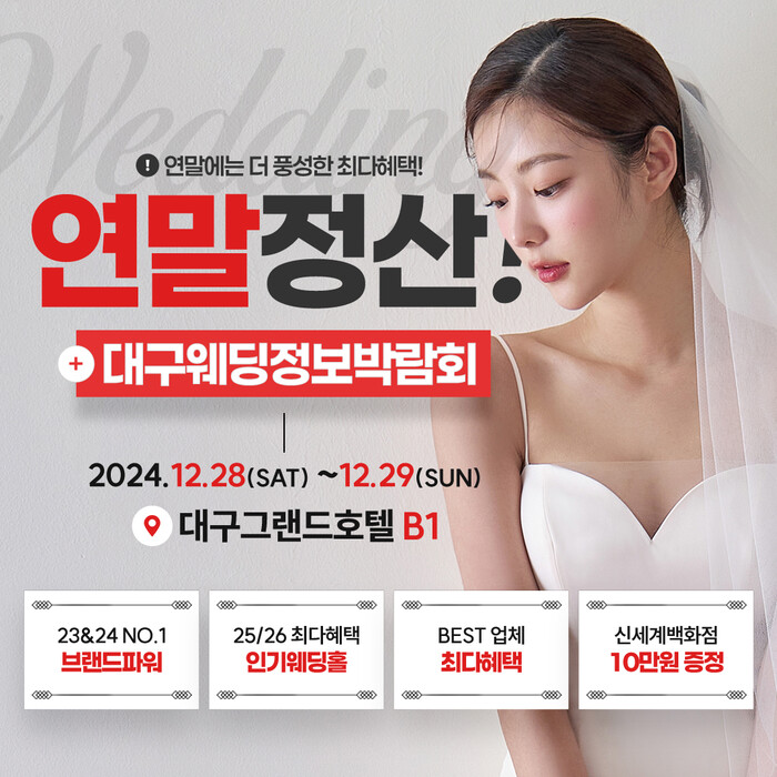 허니문, 예물, 신혼 가전, 주례 및 축가와 같은 다양한 결혼 관련 정보도 제공되어 모든 것을 한눈에 비교할 수 있는 장이 마련된다. 대구 그랜드호텔은 2호선 범어역에서 도보로 쉽게 접근할 수 있으며, 넉넉한 주차 공간도 마련되어 자차를 이용하는 방문객들에게도 편리하다. 계약을 하지 않더라도 필요한 정보와 다양한 경품을 얻을 수 있는 이번 박람회에 많은 예비 부부들이 참여하기를 기대한다.
