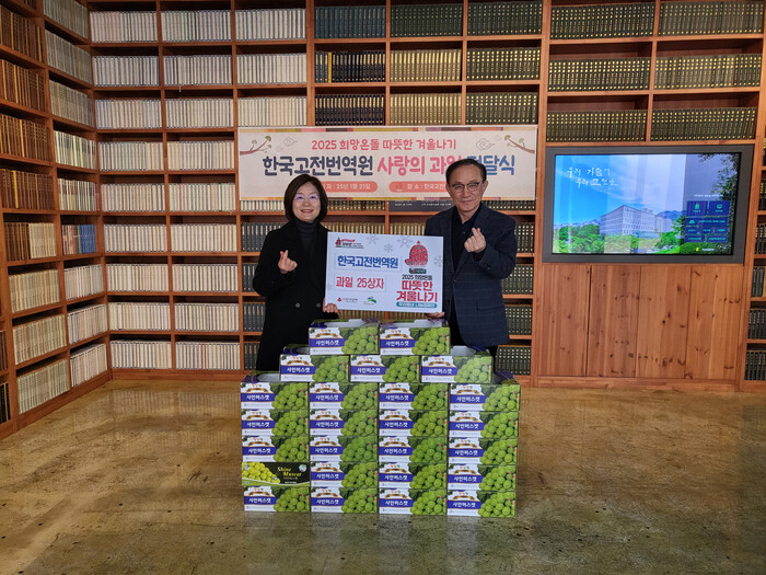 임진 진관동장은 “지역복지 발전을 위해 지속적인 관심과 후원을 해 주시는 한국고전번역원에 진심으로 감사하다”며 “전달받은 과일상자는 취약 가구에 정성껏 전달하겠다”고 밝혔다.