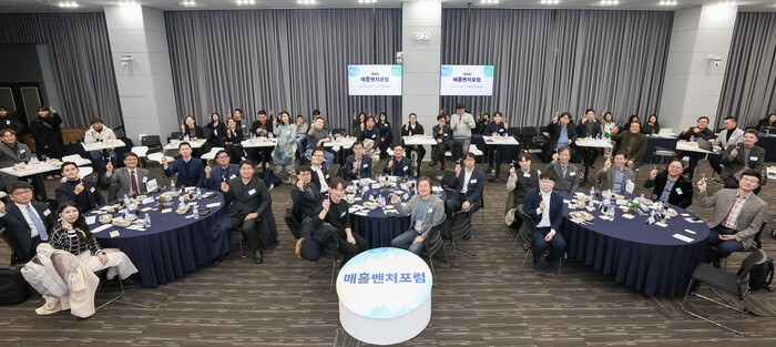 경기 수원시가 최근 대·중견·창업기업, AC/VC(창업 기획자/벤처 캐피털) 등에서 60여명이 참여한 가운데 시청 중회의실에서 제4회 매홀벤처포럼을 개최했다. 사진은 포럼에 참석한 관계자들이 기념 촬영을 하는 모습. (사진=수원시청 제공)