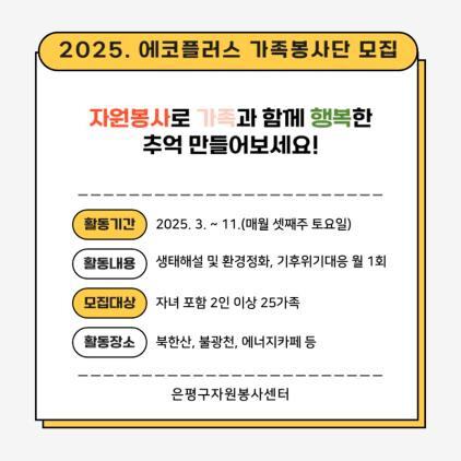 | ▲ 에코플러스 가족봉산단 모집 안내 포스터. (사진=은평구청 제공) |