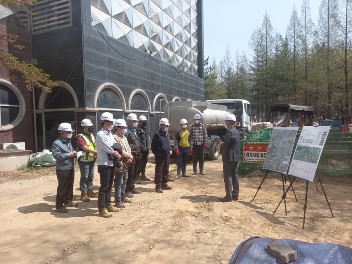 청주시 상수도사업본부가 지난 12일 ‘SK하이닉스 신규공장 공업용수 공급사업’ 2단계 사업 현장에서 상수도 관련 직무역량을 강화하기 위해 공사 관계자들을 대상으로 건설안전, 시공방법, 문제점 해결 방안 등에 대한 교육을 실시했다.