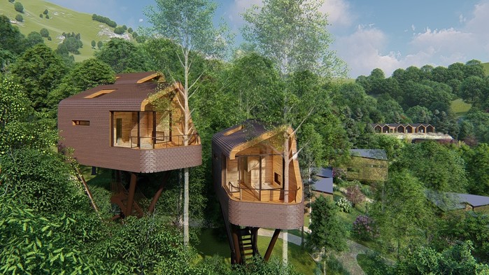 숲정원은 약 3000㎡로 2인실부터 6인실까지 다양한 사이즈의 숙소와 트리하우스 총 8동이 들어선다.