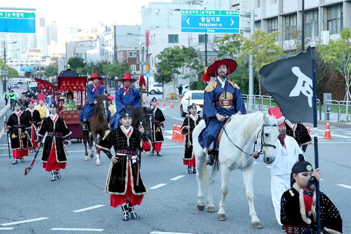 축제는 오는 21일 오후 5시30분 소월아트홀에서 ‘태조 이성계 사냥행차’ 재현을 시작으로 본격적인 막을 올린다. 1999년부터 이어진 사냥행차 퍼레이드는 ‘사냥’을 주제로 조선시대 왕들의 대표적인 사냥터였던 살곶이 다리, 나라의 말을 먹이는 마장(馬場)을 연계하여 태조 이성계가 사냥에 나서는 모습을 재현한다.