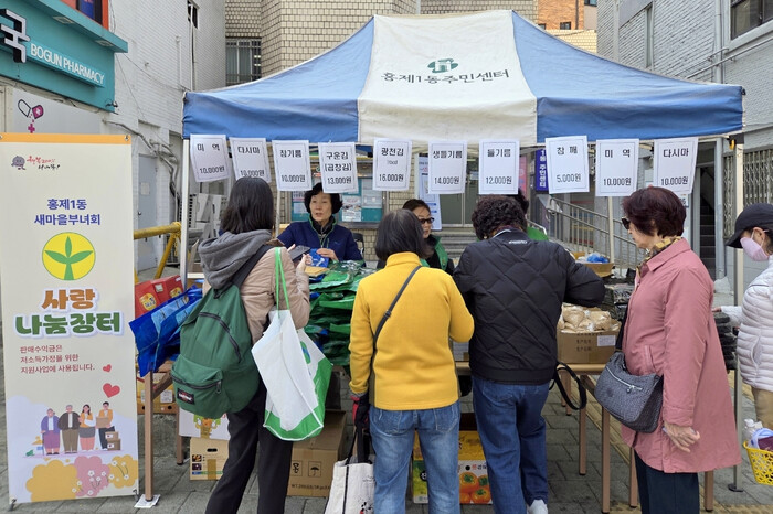 [시민일보 = 이대우 기자] 서울 서대문구 홍제1동 새마을부녀회가 최근 이틀간 동주민센터 앞에서 ‘사랑나눔장터’를 성공적으로 개최했다.