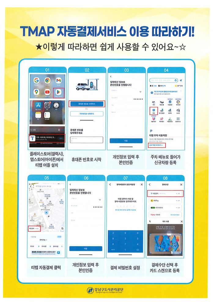 또한 이번에 도입된 티맵(TMAP) 자동결제 서비스는 결제뿐 아니라, 공영 노외주차장 27개소의 위치 검색, 주차장 정보, 실시간 요금 조회, 사전 정산, 자동결제 등 다양한 기능을 제공하는 통합 모빌리티 서비스로 운영된다.