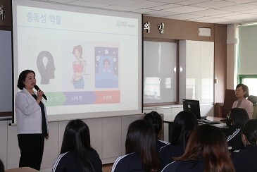 방소영 약사는 △청소년 유해약물의 종류(주류, 담배, 마약류, 환각제 등) △유해약물이 신체에 미치는 영향 △유해약물에 중독되는 이유 등 유해약물의 위험성과 유해약물의 유혹을 이기는 방법을 소개했다.