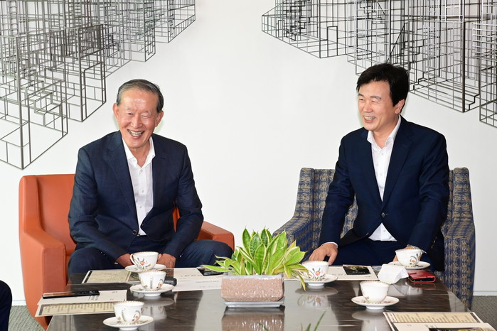 [진주=최성일 기자]조규일 진주시장은 11일 허창수 전국경제인연합회장을 만나 진주지역 발전을 위한 간담의 시간을 가졌다. 이 자리에는 전경련 권태신 상근부회장과 배상근 총괄전무, 김봉만 국제본부장도 배석했다.