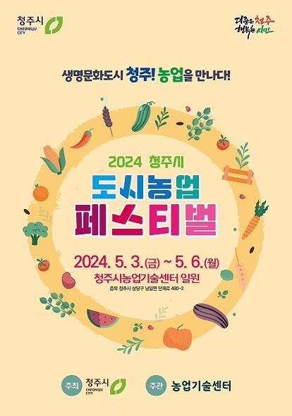 [청주=최성일 기자] 청주시는 도심에서 농업·농촌을 체험할 수 있는 ‘2024 청주시 도시농업 페스티벌’이 오는 5월 3일부터 5월 6일까지 청주시농업기술센터 유기농복합단지에서 열린다고 밝혔다.