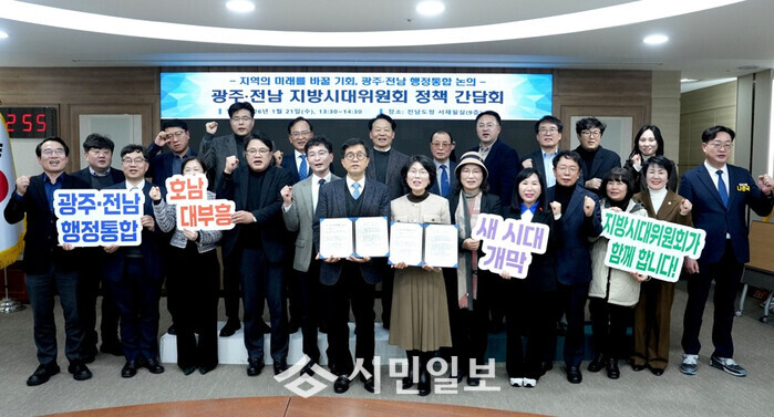 광주광역시지방시대위원회와 전라남도지방시대위원회는 21일 오후 전남도청 서재필실에서 공동간담회를 열고, 행정통합 추진과정에서 위원회의 역할과 협력 방안을 논의했다.