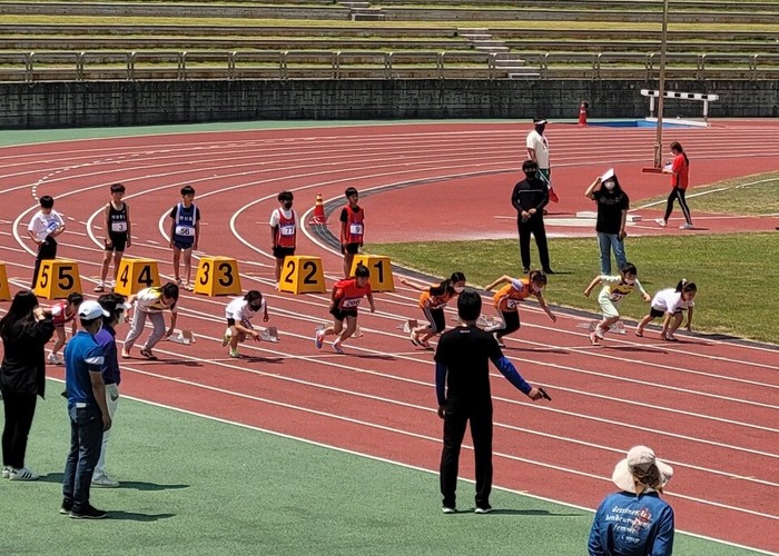 | ▲ 해남읍 소재 우슬경기장에서 치러진 초등부 여자 학생 80m 결승 스타트 신호와 함께 힘차게 역주하고 있는 미래 육상선수들 / 사진=해남교육지원청 제공 |