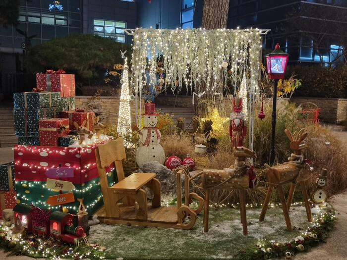 구청 앞 정원에는 은평목공소에서 직접 제작한 루돌프 썰매가 선물을 가득 싣고 있는 모습이 전시돼 아이들은 물론 어른들까지 발길을 멈추게 하고 있다.
