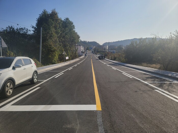 이에 군은 총공사비 11억원을 투입해 연장 174m 폭 15m로 왕복 2차선 및 좌우 인도측에 포켓주차장 34면을 포함한 도로를 개설했으며, 건물 1동 손실보상 협의 지연으로 인해 사업 미완료 잔여 구간은 오는 2024년도에 추가 진행할 계획이다.