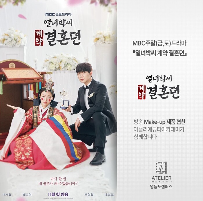 영등포미용학원 아뜰리에뷰티아카데미 영등포캠퍼스는 적극적인 마케팅으로 각종 방송 드라마와 뮤지컬 등에 메이크업을 협찬하고 있는데 최근 첫회 방송된 "열녀박씨 계약결혼뎐"에 메이크업 제품 협찬을 진행하여 관심을 끌고 있다.