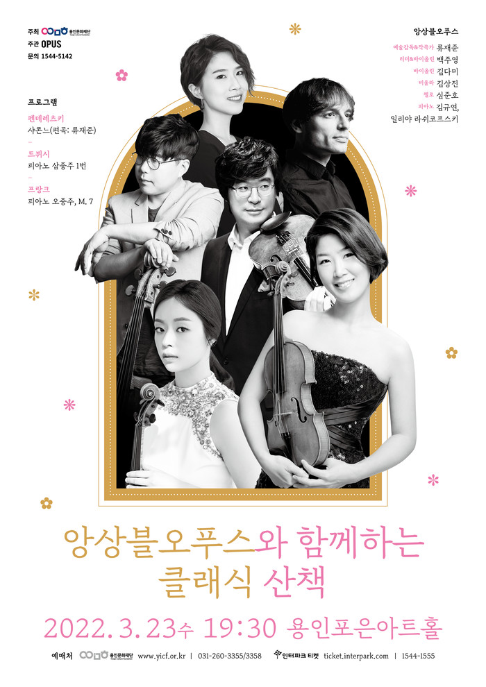 [용인=오왕석 기자] 용인문화재단(이사장 백군기)은 ‘앙상블오푸스와 함께하는 클래식 산책’을 오는 23일 오후 7시30분에 용인포은아트홀에서 개최한다.