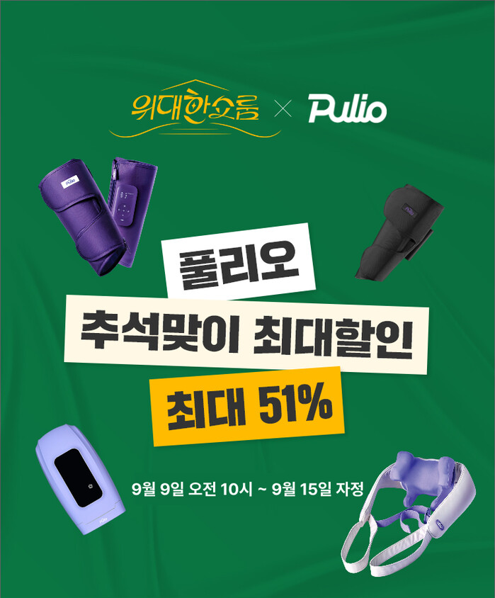 마사지기 상품 론칭을 시작으로 빠르게 성장한 풀리오는 2024년 누적 매출 1500억 원을 달성했다. 특히 풀리오의 종아리 마사지기는 8월 현재 누적 150만 대 판매를 돌파하는 등 큰 인기를 얻고 있다.