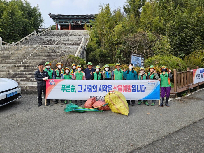 이번 활동은 최근 건조한 날씨 속에 비봉산 산복도로 일대 도로변과 배수로에 낙엽이 쌓여 있어 낙엽 제거 활동을 통해 산불을 예방하고 안전한 등산로를 조성하기 위하여 진행되었다.